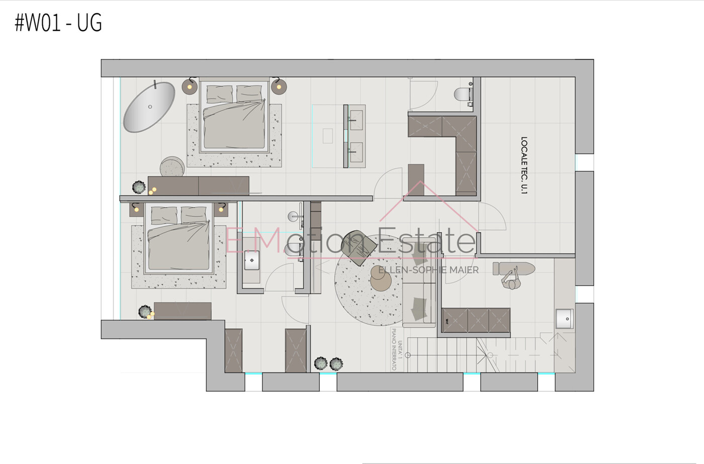 Die Gartenebene überzeugt mit zwei großzügigen Schlafzimmern, jeweils mit eigenem Bad, und bietet damit höchsten Wohnkomfort für Familie, Gäste oder Homeoffice. Ergänzt wird diese Ebene durch einen praktischen Hauswirtschaftsraum sowie eine stilvolle Relaxzone im Flur, die zum Entspannen einlädt. Der direkte Zugang zum privaten Garten macht diese Wohnung zu einem ganz besonderen Zuhause.