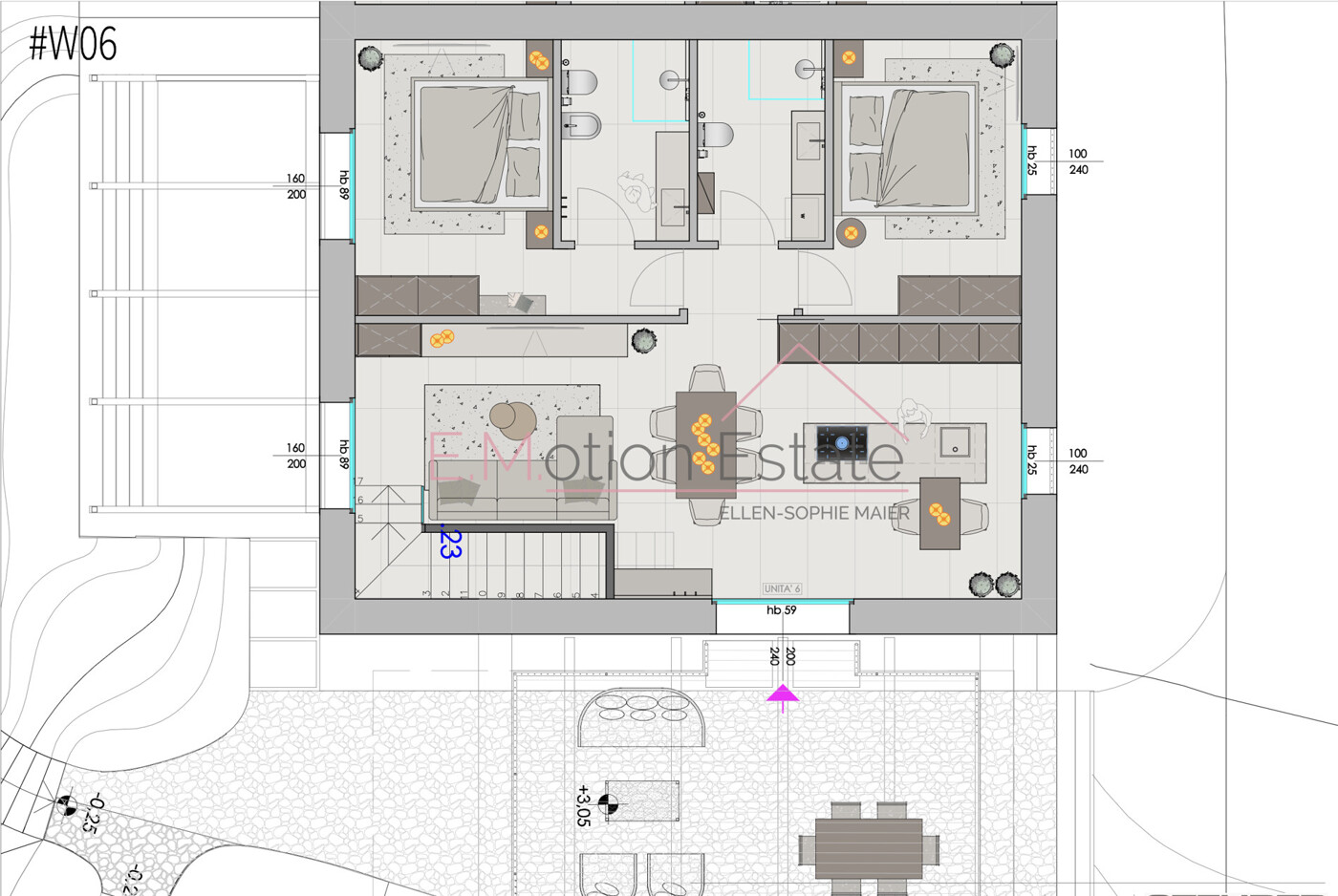 Das Projekt sieht luxuriöse Wohnungen und 2 exklusive Einzelvillen vor, diese bilden zusammen ein exklusives Resort mit viel Sicherheit und Privacy.